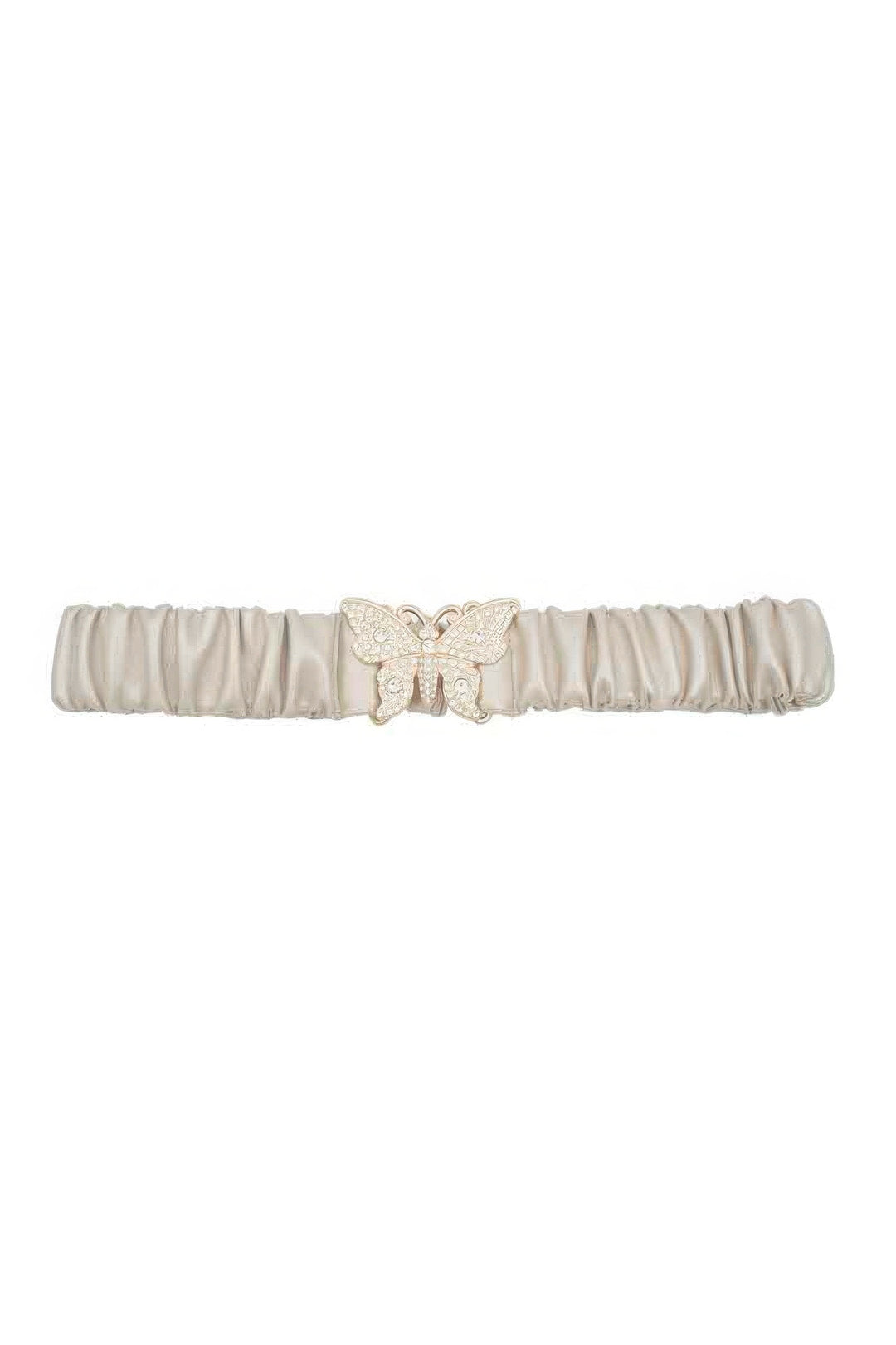 Rhinestone Pave Butterfly Ruched Elastic Back Belt