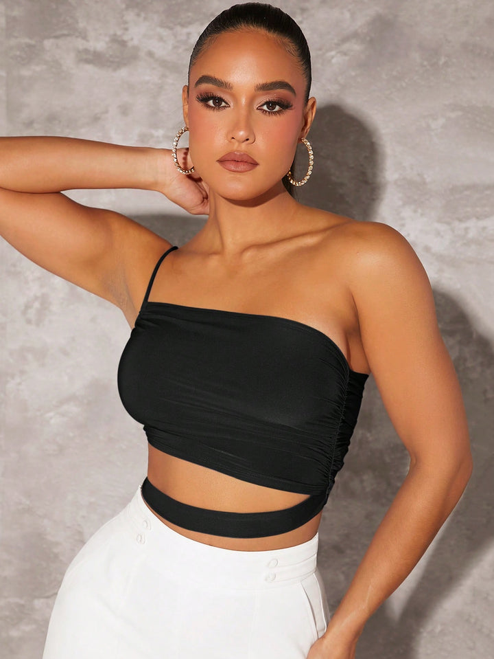 SHEIN BAE One Shoulder Cut Out Ruched Side Crop Top