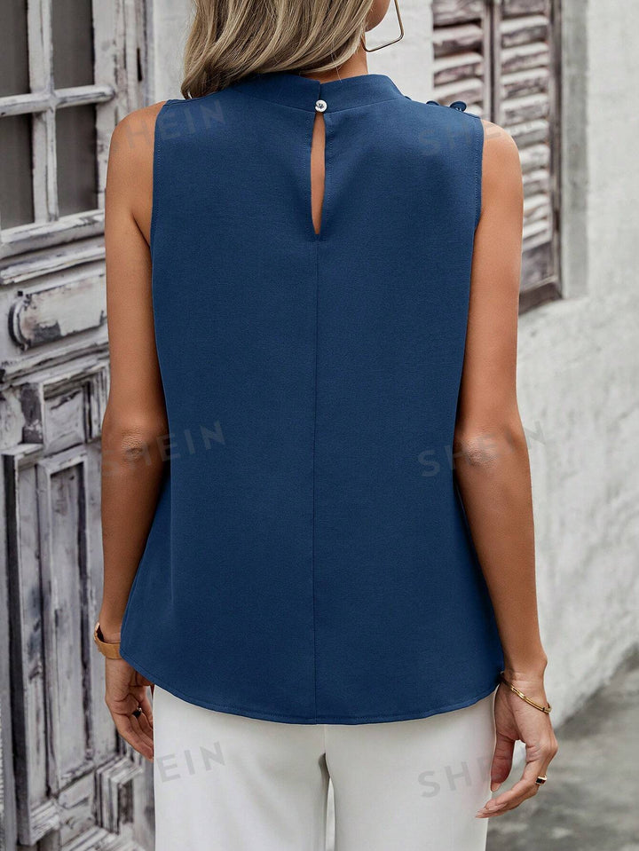 SHEIN Clasi Women's Plain Pleated Sleeveless Summer Casual Shirt For Daily Wear