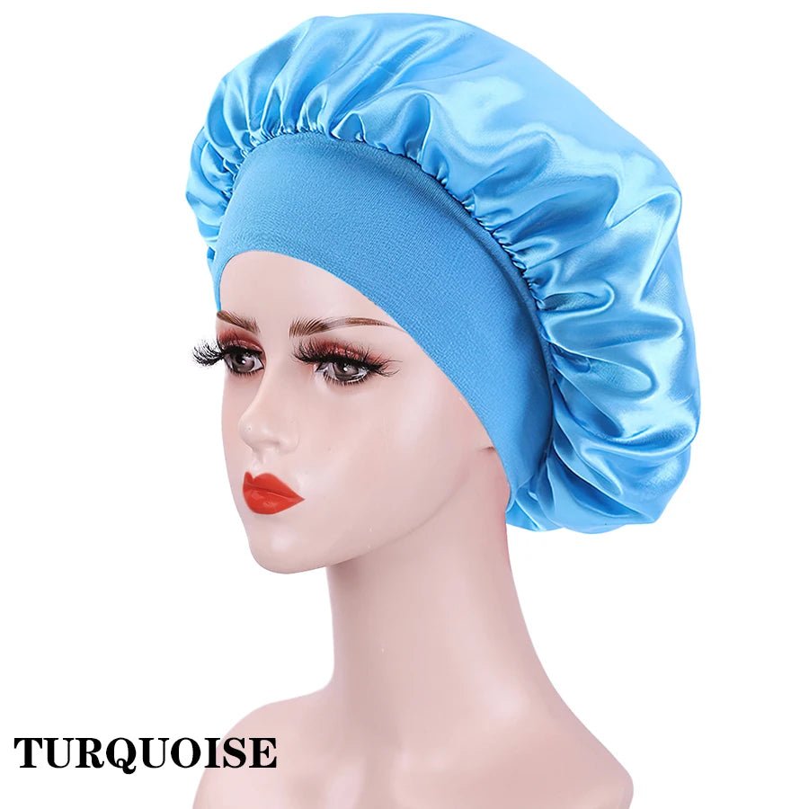 The generous size of this bonnet is perfect for long, thick, or curly hair, ensuring that every strand is covered and cared for. The elastic band ensures a secure and comfortable fit all night long, so you can rest easy knowing your hair is in good hands.