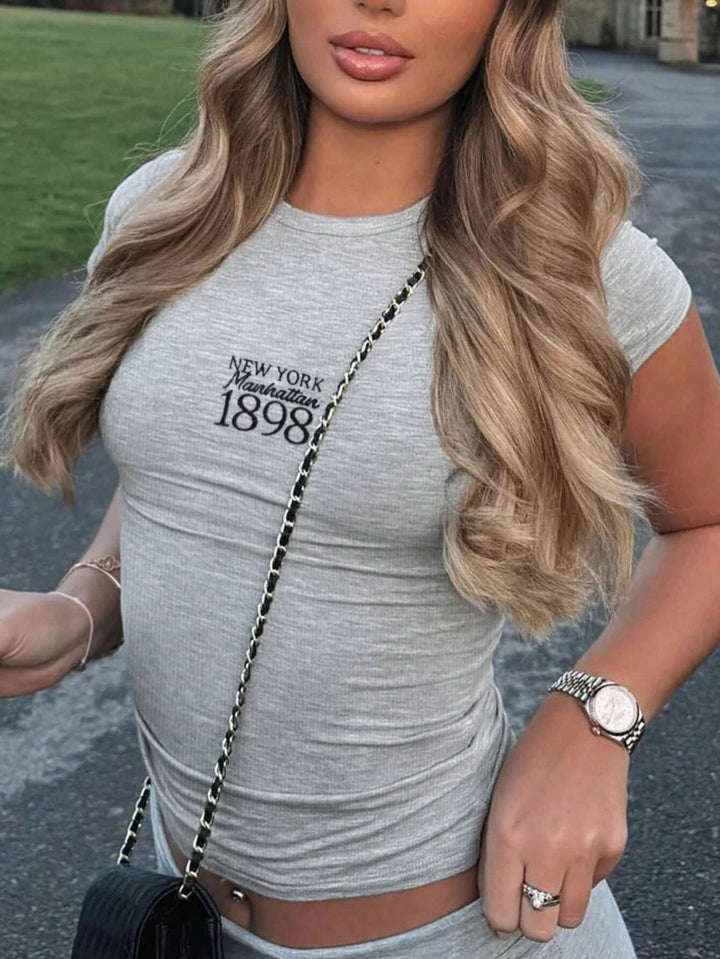 SHEIN Essnce Women Summer Short Sleeve Casual T-Shirt With Letter Print Round Neck