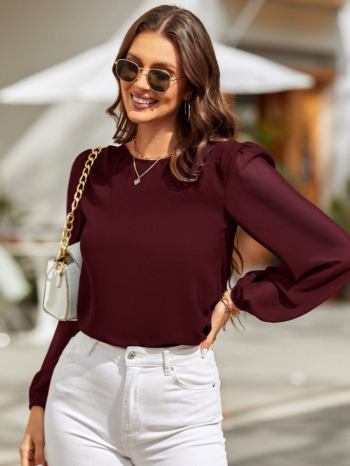 SHEIN LUNE Lantern Sleeve Keyhole Back Blouse