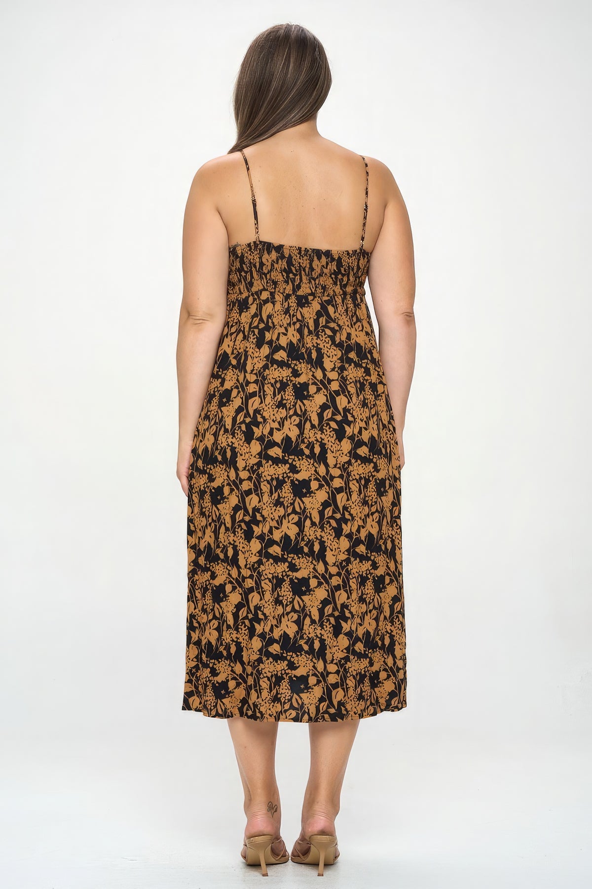Make a statement with our Brown/Black Plus Botanical Print Front Tie Maxi Dress. Add it to your cart now and experience a new level of plus-size fashion!