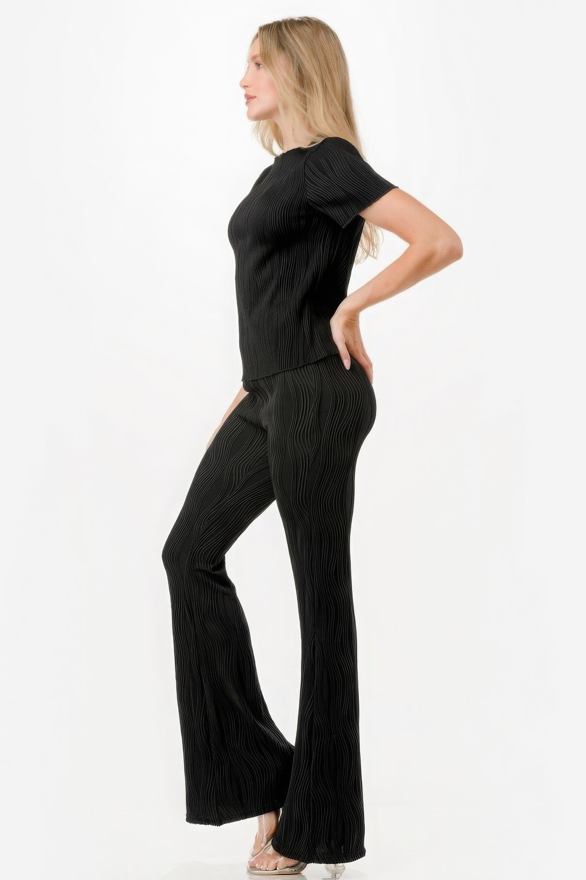 Elevate your everyday style with our Pretty Pleated Flare Pants Set, a versatile ensemble that combines comfort with sophistication. Carefully crafted with attention to detail, this set is designed to flatter your figure and keep you looking effortlessly chic.
